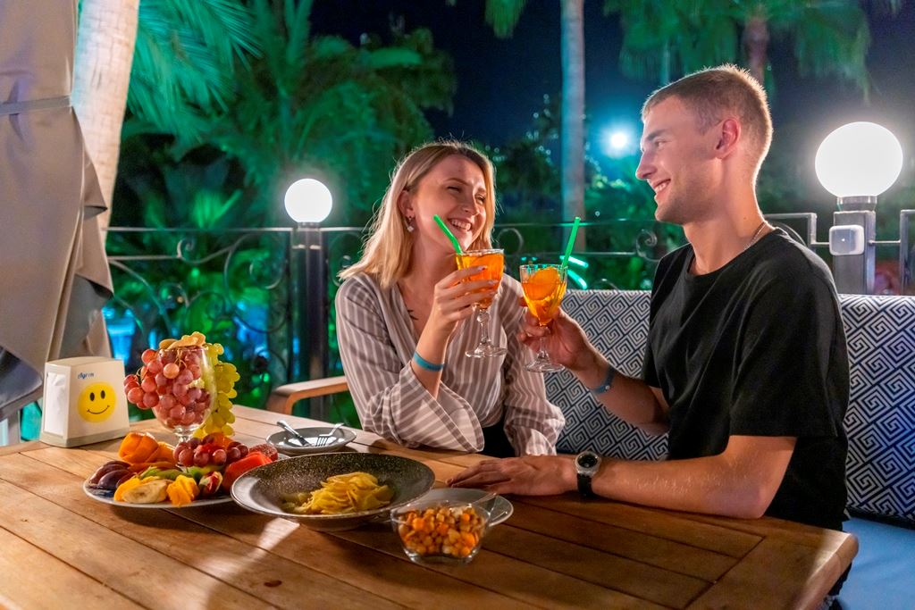 | All Inclusive | All Inclusive: 07:30 - 23:00 Toitlustus ja joogid: Hommikusöök, Hiline hommikusöök, Lõunasöök, Suupistete teenus, Teeaeg, Õhtusöök Tasuta: Mittealkohoolsed joogid, Kohalikud joogid, Jäätis, Mesinädalate pakett, Sünnipäevapakett, Kondiitritooted Lisatasu: Importjoogid Ajakava: Hommikusöök: restoranid MAIN RESTAURANT (Rootsi laud, 07:30 - 09:30) Hiline hommikusöök: restoranid MAIN RESTAURANT (Rootsi laud, 09:30 - 10:00) Lõunasöök: restoranid MAIN RESTAURANT (Rootsi laud, 12:30 - 14:00) Suupistete teenus: restoranid SHOW BUFFET (Fikseeritud menüü, 11:00 - 16:00) Teeaeg: restoranid PATISSERIE (Fikseeritud menüü, 16:00 - 18:00) Õhtusöök: restoranid MAIN RESTAURANT (Rootsi laud, 19:00 - 21:00) |